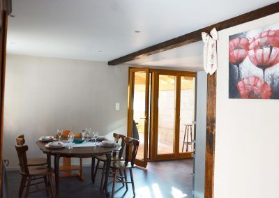Au rez-de-chaussée, se trouve une cuisine entièrement équipée donnant sur la terrasse par une grande porte fenêtre, un grand salon avec un large canapé convertible (2 places de couchage) et une TV connectée à la freebox.